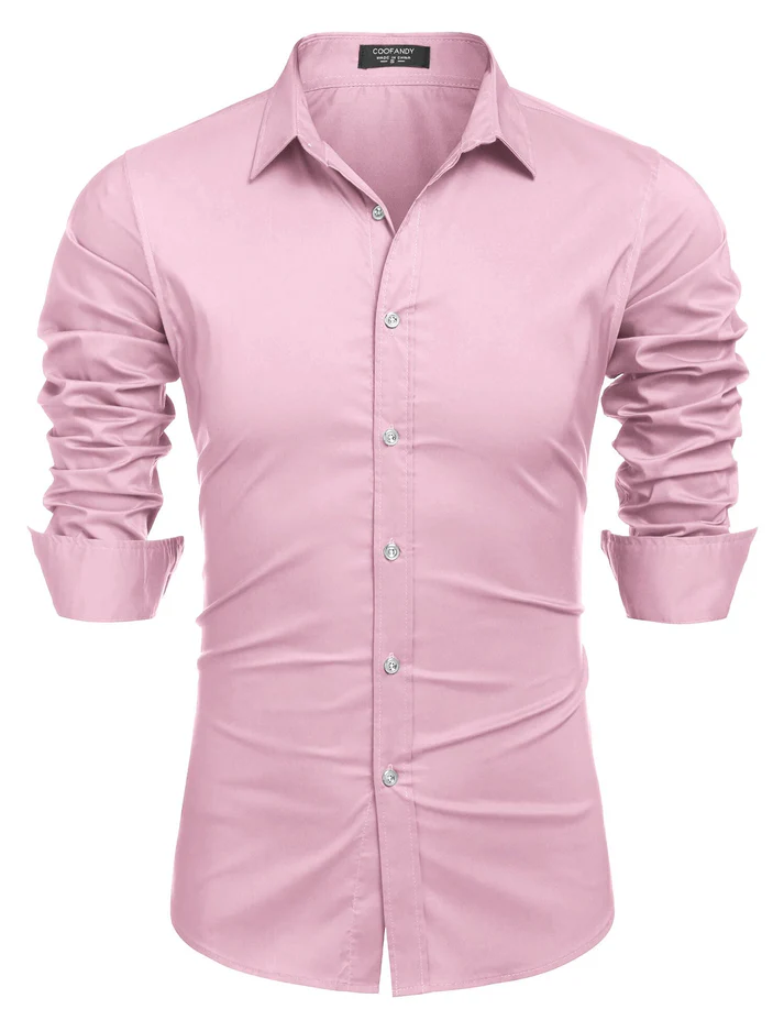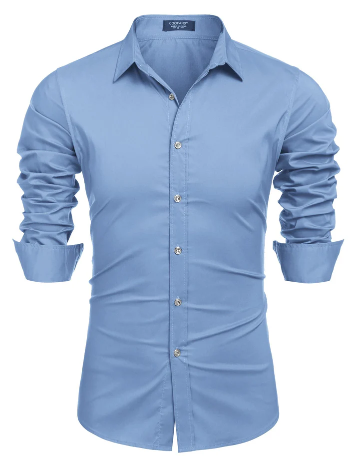 Fashionable Design: Men's stylish dress shirt design in slim fit, classic turn down collar, button up closure, solid color, long sleeve, metal contrast buttons, make you handsome and attractive.